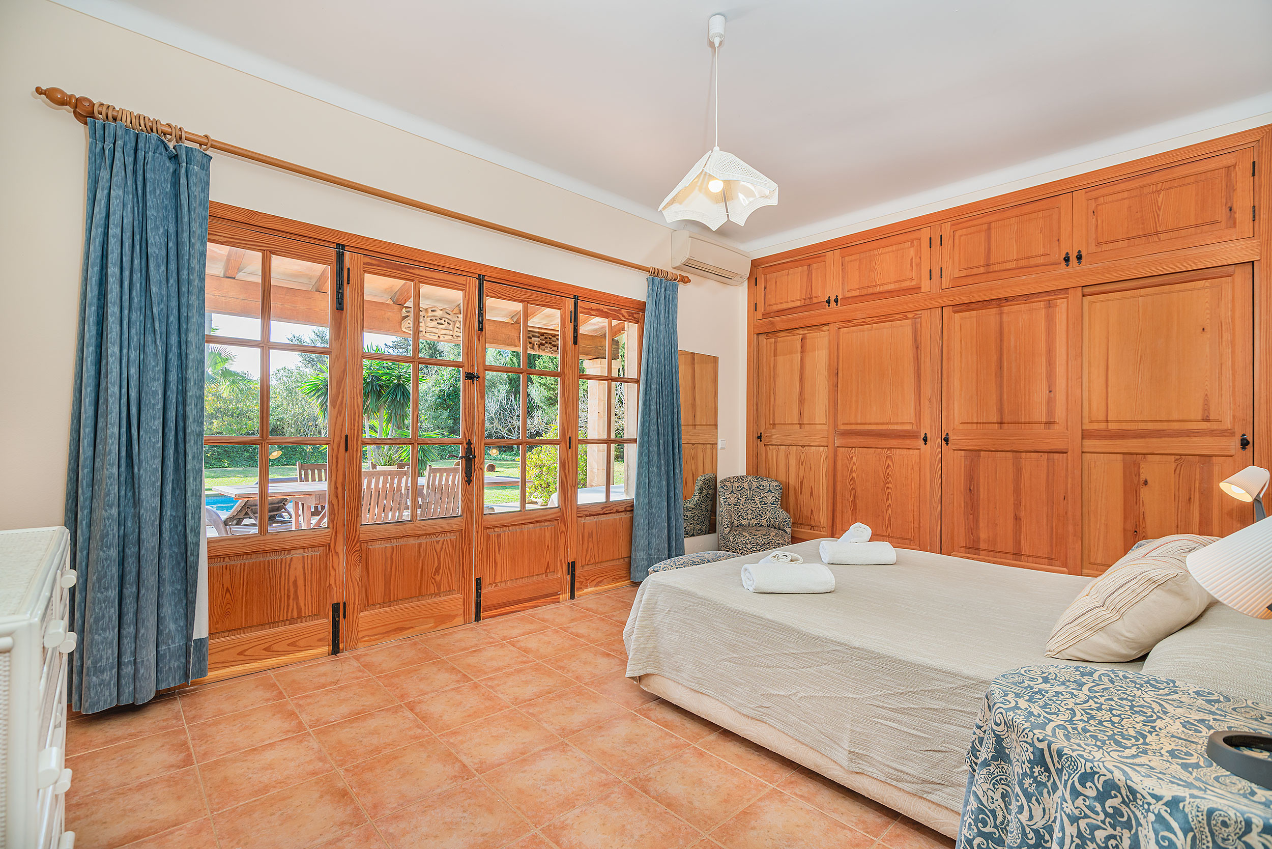 The holiday villa in Pollensa Villa Manyani has a garden, garden furniture, fenced plot, terrace, washing machine, barbecue, iron, safe, internet access (Wi-Fi), hairdryer, heat pump heating, air conditioning in all bedrooms, private pool, outdoor parking in the same building and television (Smart TV - streaming platforms not included).