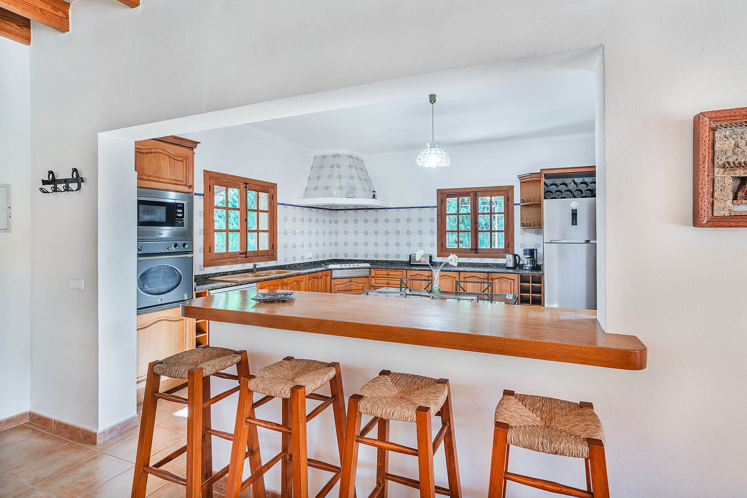 This villa for rent in Pollensa is located 2 km from the supermarket “Lidl”, 2 km from the supermarket “Eroski”, 3 km from the town of “Pollensa”, 3 km from the bus station “Parada Autobus Pollensa”, 4 km from the sandy beach “Llenaire (Puerto Pollensa)”, 6 km from the town of “Puerto Pollensa”, 6 km from the golf course “Golf Pollensa”, 7 km from the rocky beach “Cala Sant Vicente”, 8 km from the town of “Alcudia”, 10 km from the town of “Puerto Alcudia”, 10 km from the sandy beach “Puerto Alcudia” 17 km from the train station “Estación Tren Sa Pobla” and 60 km from the airport “Aeropuerto Palma”.